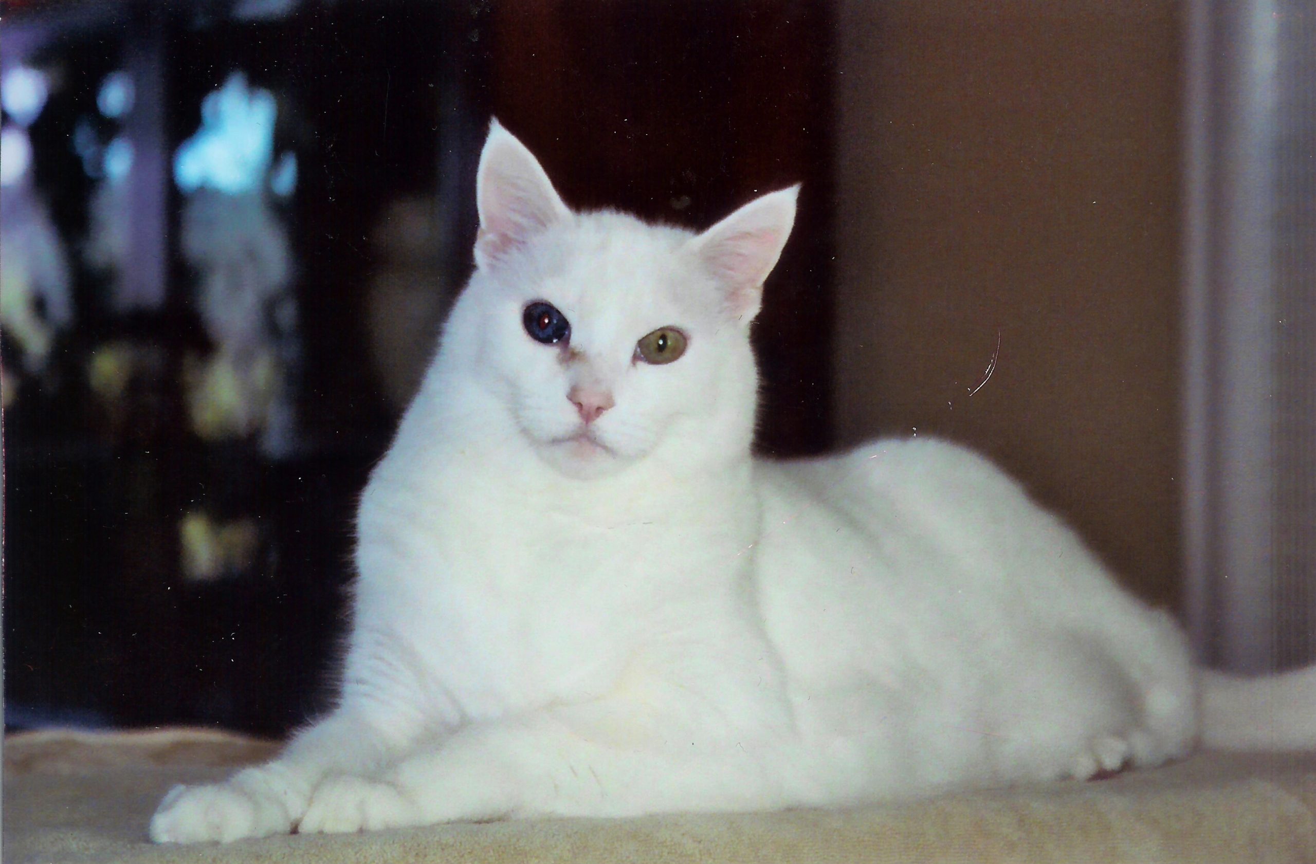 Rover was a beautiful white cat with the pointiest ears I’ve ever seen! His person was a kind woman named Kathy. Rover didn’t start out as her cat, though — he originally lived with Kathy’s neighbors. But Rover LOVED bacon and was happy to visit Kathy to get his share when she cooked it. Kathy loved Rover from the start.