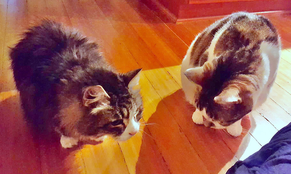 I had a report back from Joni a couple days later. Jack was back to his normal happy, loving self. Amazingly, Joni said, “Tanya was a completely different cat!” Tanya was spending a lot of time with Jack and was being very affectionate — even “kissing” Jack and playing with him!